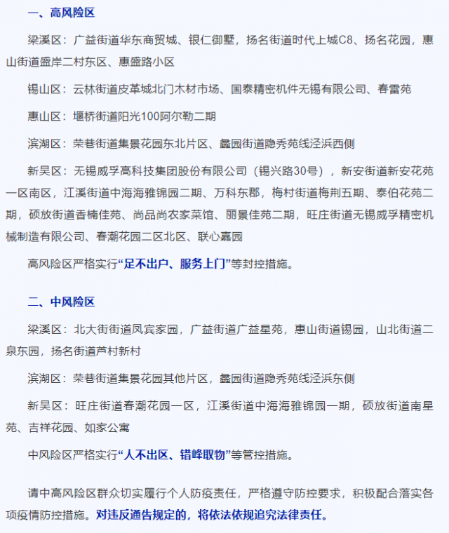 江蘇無(wú)錫新增7名陽(yáng)性人員 重新調(diào)整風(fēng)險(xiǎn)區(qū)域