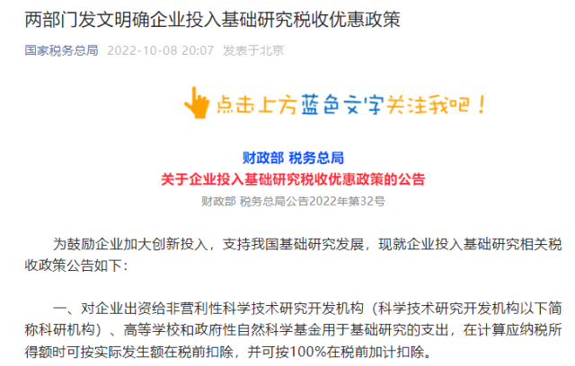 為鼓勵企業加大創新投入,支持我國基礎研究發展,現就企業投入基礎研究相關稅收政策公告如下: