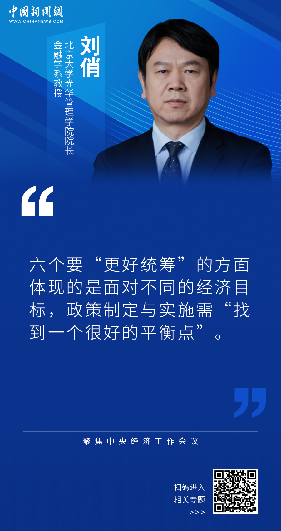 北京大學光華管理學院院長、金融學系教授劉俏在接受中新網“中國新觀察”欄目專訪時表示,六個要“更好統籌”的方面體現的是面對不同的經濟目標,政策制定與實施需“找到一個很好的平衡點”。