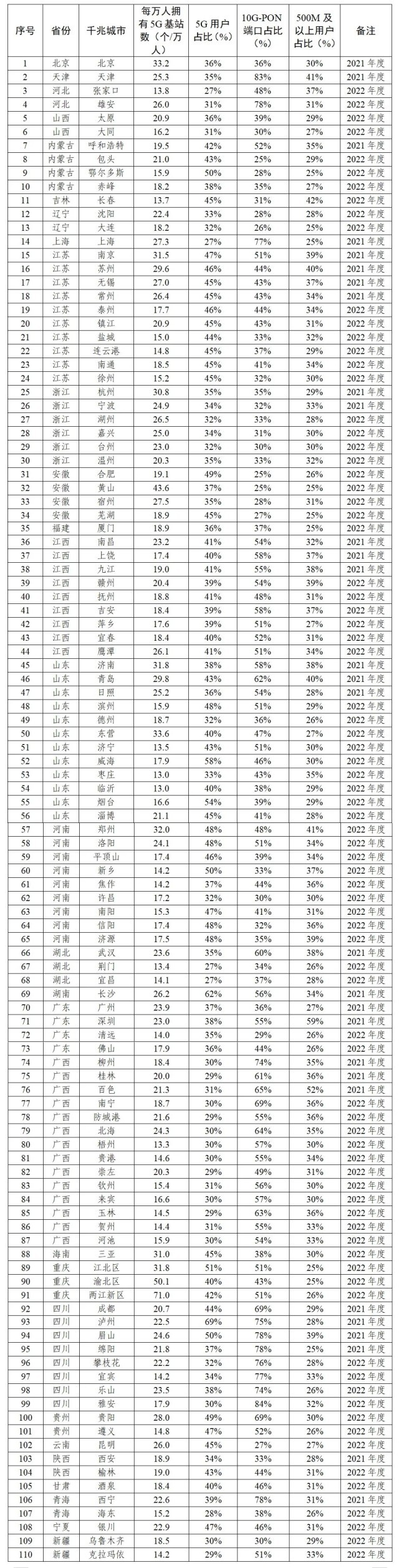 關(guān)于2022年千兆城市建設(shè)情況的通報(bào)