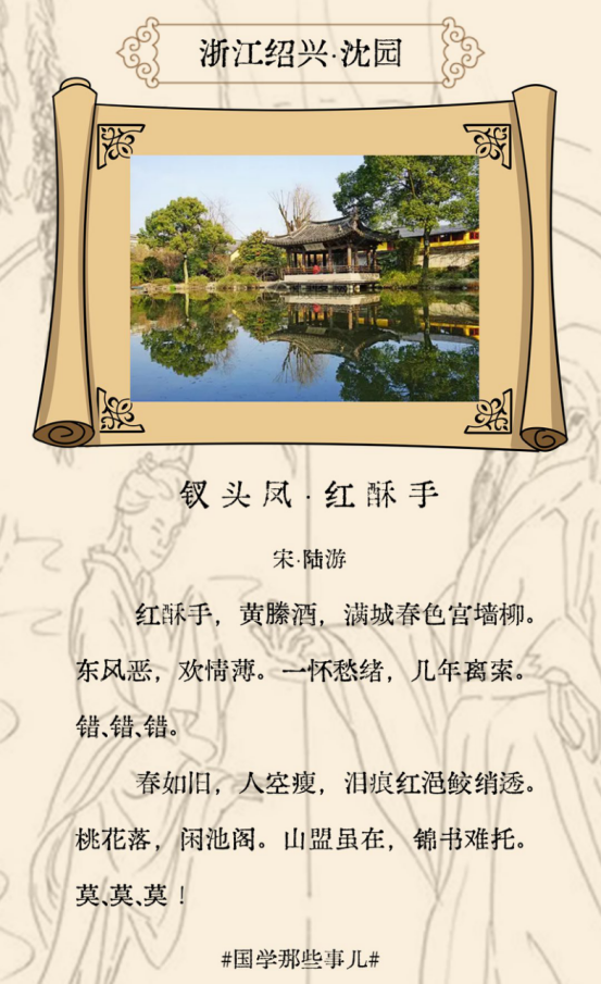 當文人墨客于某一個地點緣事抒情,詩詞中飽含的情感伴隨著詩詞名篇穿越千古,讓我們在吟詠嘆息間與詩人同悲同喜,其抒懷之地也名聞天下,成為后人追懷仰止的著名景點。當我們站在古人曾佇立的地方,或憑欄遠眺、或泛舟湖上......或許更能感知詩人寫下千古名篇時的那一份心緒。(中青報·中青網見習記者 馮云慧 實習生 方淑睿)