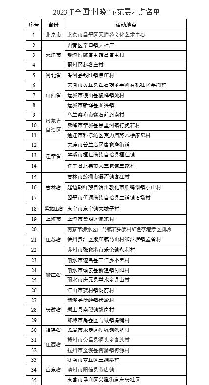 中國經濟網北京1月10日訊(記者 魏金金)如今,“村晚”已經成為豐富基層群眾節日文化生活、傳承年俗文化和培育鄉村文明的新風尚。記者從文化和旅游部官網獲悉,2023年全國“村晚”示范展示點名單已出爐,北京市昌平區天通苑文化藝術中心等74個活動地點入選。