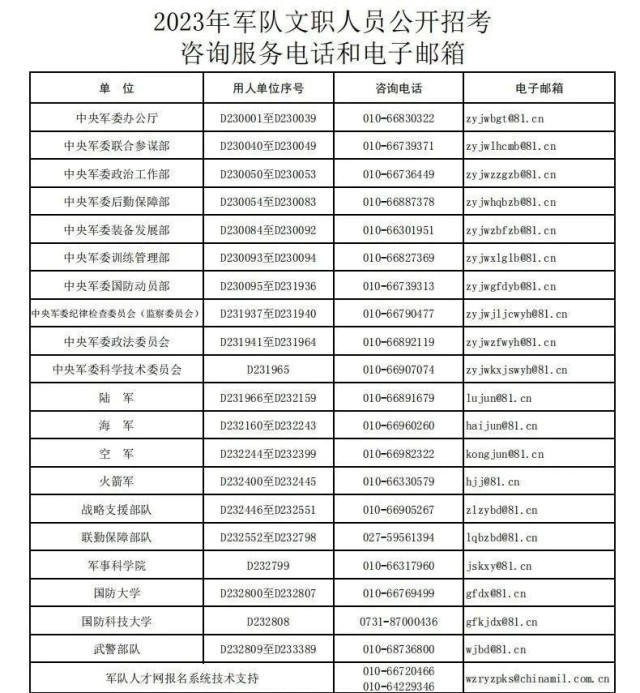 對藝術(shù)、體育崗位實行先面試后筆試。報考人員根據(jù)全軍統(tǒng)一發(fā)布的招考崗位計劃和文體用人單位報考指南,先到用人單位報名參加面試,合格者方可獲得報名參加全軍統(tǒng)一考試資格,于2023年1月19日8:00至18:00登錄軍隊人才網(wǎng)繳納報名費和打印報名回執(zhí)。