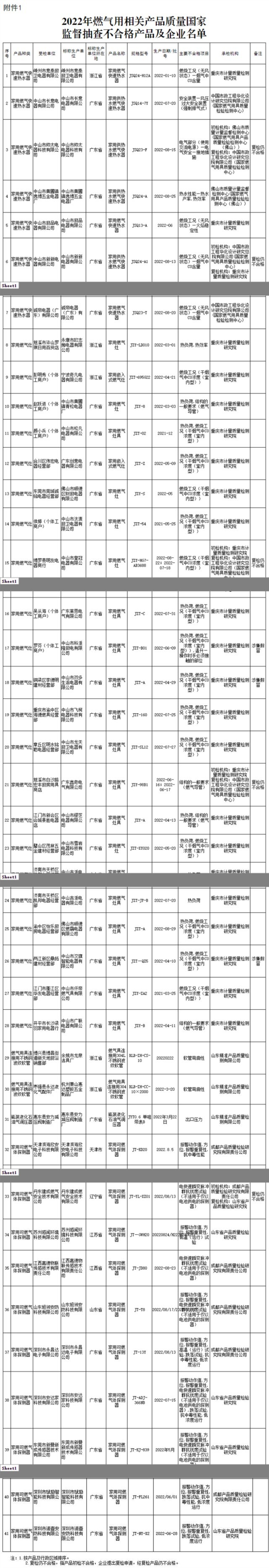 ?。ㄒ唬┏椴楦艣r。本次抽查609家企業生產的610批次產品,涉及家用燃氣快速熱水器、家用燃氣灶、瓶裝液化石油氣調壓器、燃氣用具連接用不銹鋼波紋軟管、家用可燃氣體探測器等5種產品,發現41批次產品不合格,抽查不合格率為6.7%。