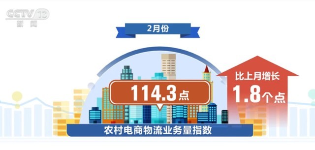 另外,農村電商物流業務量連續增長。2月份,農村電商物流業務量指數為114.3點,比上月增長1.8個點。