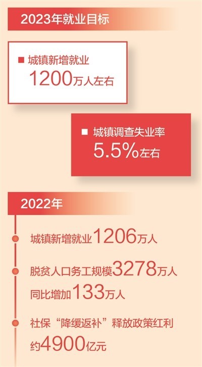 政府工作報告提出今年發(fā)展主要預期目標中,城鎮(zhèn)新增就業(yè)1200萬人左右,城鎮(zhèn)調(diào)查失業(yè)率5.5%左右。