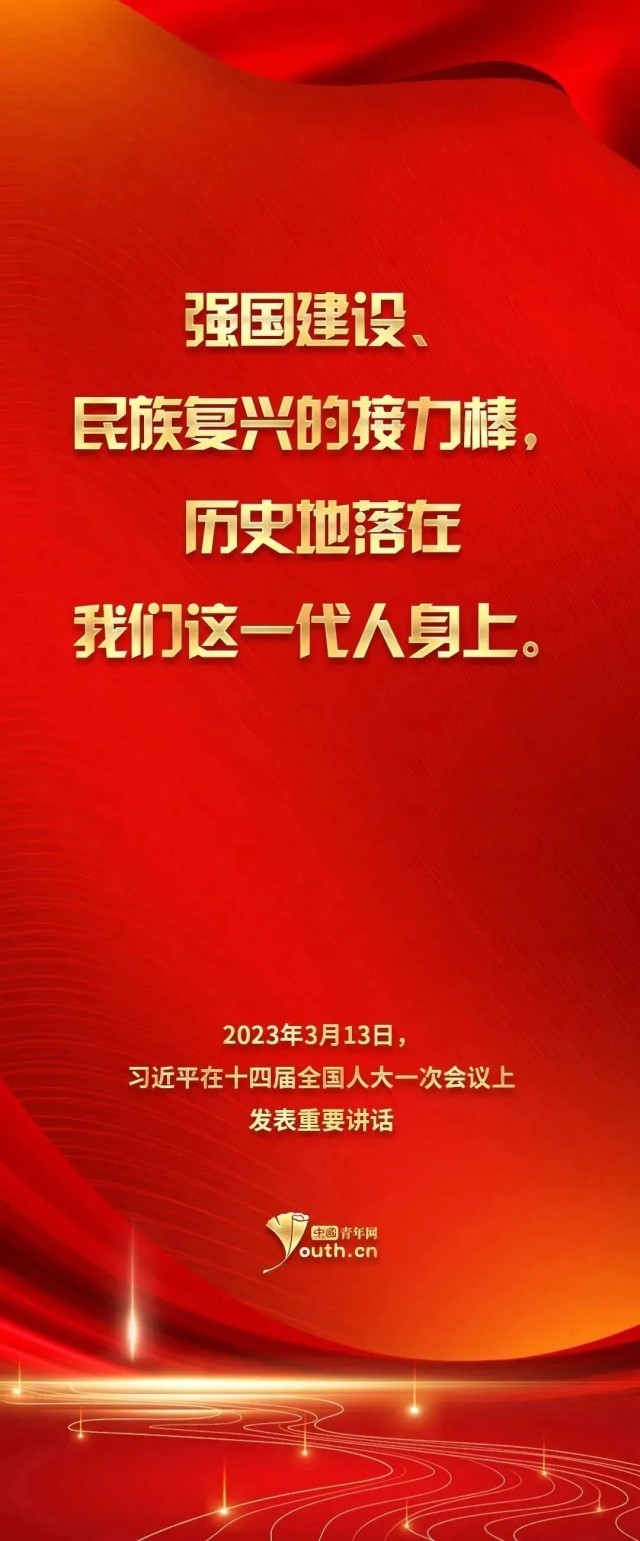 “強(qiáng)國建設(shè)、民族復(fù)興的接力棒,歷史地落在我們這一代人身上。”習(xí)近平主席的講話不僅為我們在新的歷史方位中、在新的發(fā)展階段上指明了前進(jìn)的方向,也帶領(lǐng)我們這一代人舉起了接續(xù)奮斗的偉大旗幟。