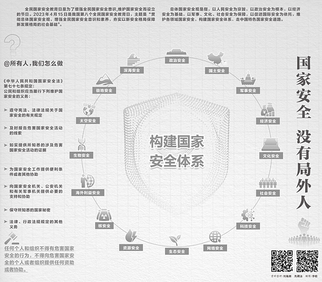 全民國家安全教育日是為了增強全民國家安全意識,維護國家安全而設立的節日。2023年4月15日是我國第八個全民國家安全教育日,主題是“貫徹總體國家安全觀,增強全民國家安全意識和素養,夯實以新安全格局保障新發展格局的社會基礎”。