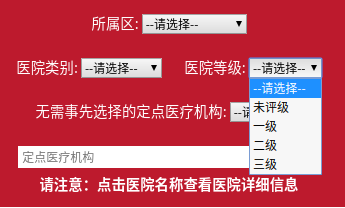 同時可選擇所屬區、醫院類別(定點中醫醫院、定點專科醫院、對外綜合等醫院等)、醫院等級,或輸入定點醫院名稱進行詳細查詢。