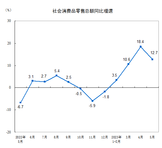 國家統計局:今年5月份社會消費品零售總額增長12.7%