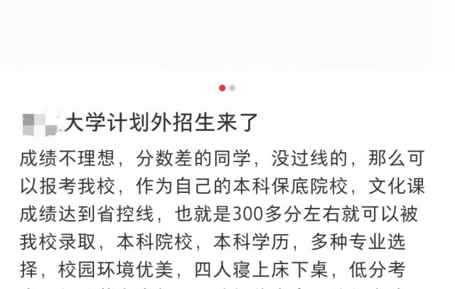 圖為在某社交媒體上搜索到的一條“計劃外招生”信息。(互聯網截圖)