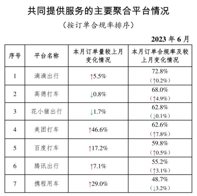 其中,面向乘客、與網約車平臺公司共同提供服務的平臺(俗稱“聚合平臺”)完成2.18億單,環比上升4.0%。按訂單合規率由高到低的分別是滴滴出行、高德打車、花小豬出行、美團打車、百度打車、騰訊出行、攜程用車。