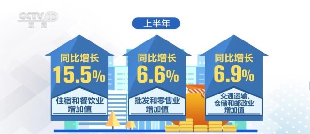 2023年上半年,我國服務(wù)業(yè)增加值同比增長6.4%,接觸型服務(wù)業(yè)較快增長。上半年,住宿和餐飲業(yè)、批發(fā)和零售業(yè)、交通運(yùn)輸、倉儲和郵政業(yè)增加值同比分別增長15.5%、6.6%和6.9%。