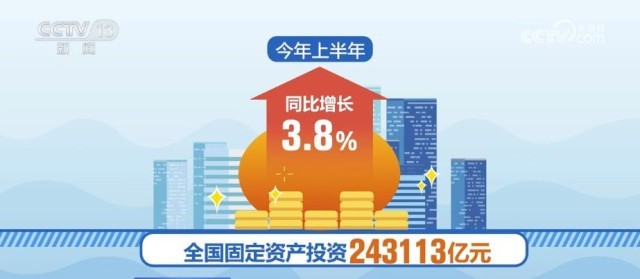 今年上半年,全國(guó)固定資產(chǎn)投資243113億元,同比增長(zhǎng)3.8%。