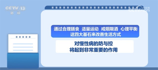 專家表示,在世衛組織向全球發布的健康公式中,影響健康的因素,個人生活方式占60%、遺傳占15%、環境因素占17%,而醫療服務因素僅占8%,生活方式是最可被控制以及最有影響力的因素。通過合理膳食、適量運動、戒煙限酒和心理平衡這四大基石來改善生活方式,對慢性病的防與控將起到非常重要的作用。研究顯示,80%的冠心病、90%的2型糖尿病、三分之一的癌癥可以通過控煙限酒、健康飲食、維持正常體重等這些措施來預防。
