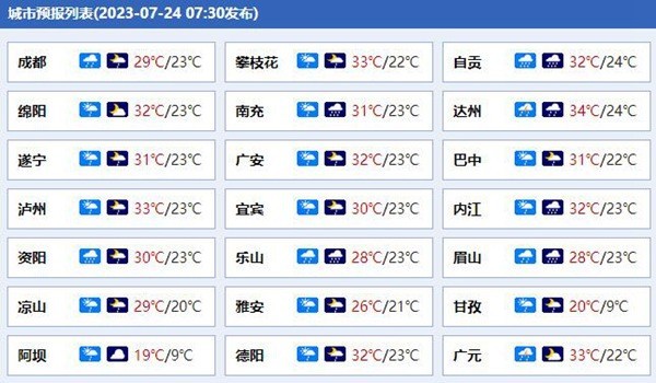 今明天(7月24日至25日),四川降雨范圍擴大,雨勢增強,其中今天成都、雅安、樂山等多地有大雨,局地暴雨,需注意防范。