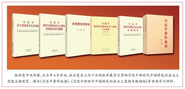 在全黨深入開展學(xué)習(xí)貫徹習(xí)近平新時(shí)代中國(guó)特色社會(huì)主義思想主題教育,是深入推進(jìn)新時(shí)代黨的建設(shè)新的偉大工程的重大部署。習(xí)近平新時(shí)代中國(guó)特色社會(huì)主義思想直面新時(shí)代管黨治黨新形勢(shì)新任務(wù),給出了自我革命這一跳出治亂興衰歷史周期率的第二個(gè)答案,為全黨時(shí)刻保持清醒和堅(jiān)定、解決大黨獨(dú)有難題指明了行動(dòng)方向、提供了根本遵循。要堅(jiān)持不懈用習(xí)近平新時(shí)代中國(guó)特色社會(huì)主義思想凝心鑄魂,教育引導(dǎo)各級(jí)黨組織和廣大黨員干部突出問題導(dǎo)向,查不足、找差距、明方向,接受政治體檢,打掃政治灰塵,糾正行為偏差,解決突出問題,不斷增強(qiáng)黨的自我凈化、自我完善、自我革新、自我提高能力,使我們黨始終充滿蓬勃生機(jī)和旺盛活力,始終成為中國(guó)特色社會(huì)主義事業(yè)的堅(jiān)強(qiáng)領(lǐng)導(dǎo)核心。