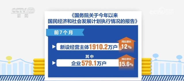 報告指出,前7個月,新設經營主體1910.2萬戶,其中企業579.1萬戶,同比分別增長12%和15.6%;股票發行注冊制改革全面落地,前7個月共有210家企業首次公開發行(IPO)上市、融資2479億元。