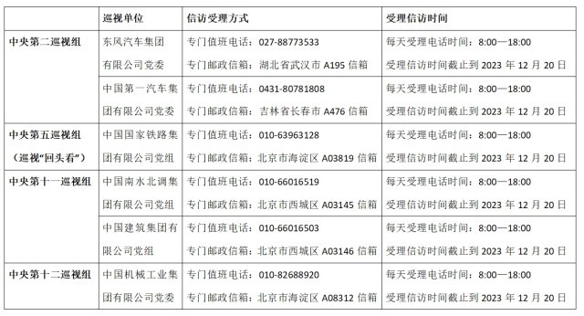 截至目前,中央巡視組已進駐6家單位,并公布了信訪聯系方式。