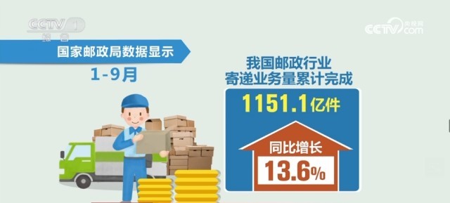 10月21日,國家郵政局發布數據顯示,1—9月,我國郵政行業寄遞業務量累計完成1151.1億件,同比增長13.6%。其中,快遞業務量(不包含郵政集團包裹業務)累計完成931.2億件,同比增長16.4%。1—9月,我國國際/港澳臺快遞業務量累計完成21.4億件,同比增長55.3%。