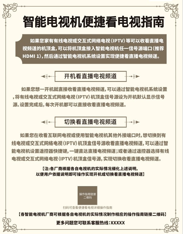 記者11月10日從國家廣播電視總局獲悉,根據(jù)治理電視“套娃”收費(fèi)和操作復(fù)雜工作部署要求,國家廣播電視總局、工業(yè)和信息化部、國家市場監(jiān)督管理總局、中國消費(fèi)者協(xié)會決定開展電視收看“明白卡”提示工作。自2023年11月起,各電視機(jī)生產(chǎn)廠商要將制作完成的《電視收看“明白卡”》裝入電視機(jī)包裝箱內(nèi)的說明材料中,同時在電商銷售頁面、線下實(shí)體銷售和廠商入戶安裝電視機(jī)過程中,將“明白卡”內(nèi)容向用戶明確展示,并告知用戶只有開通有線電視或IPTV方可收看電視直播頻道節(jié)目。(記者王鵬)