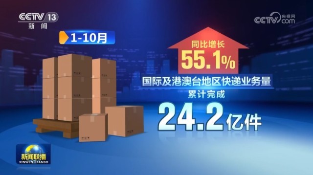 隨著我國主要快遞企業布局國際寄遞網絡,加快海外倉建設,新開通多條國際全貨機航線,通過為消費者提供全鏈路跨境電商寄遞服務,郵政快遞業在促進產品跨境流動中的作用明顯增強,國際供應鏈產業鏈保障水平進一步提升。1—10月,國際及港澳臺地區快遞業務量累計完成24.2億件,同比增長55.1%。