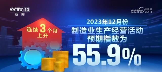 數據顯示,2023年12月份,制造業生產經營活動預期指數為55.9%,連續3個月上升,表明制造業企業對市場發展信心不斷增強。2023年12月份,高技術制造業和裝備制造業采購經理指數分別為50.3%和50.2%,繼續保持擴張。