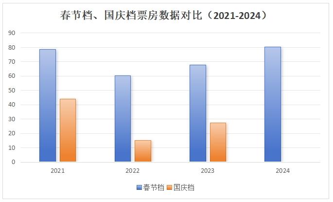 雖然春節檔有自帶的氛圍屬性,但是中新文娛查閱了近3年的對比:2021年春節檔票房78.43億、國慶檔票房43.89億;2022年春節檔票房60.4億、國慶檔票房14.99億;2023年春節檔票房67.66億、國慶檔票房27.36億。