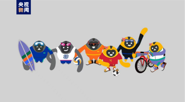 在形象色彩選擇上,沙灘排球猿,參考海浪的藍(lán)色與浪花的白色,粉色腰帶則體現(xiàn)熱情與活力;滑翔傘猿是代表勇氣的金色與代表視野的橙色的結(jié)合,展現(xiàn)極限運(yùn)動員的能量與勇氣;沖浪猿的配色參考自碧海藍(lán)天的概念,帆船猿則參考自深海浪濤的概念,均展現(xiàn)海南豐富的海洋資源;足球猿參考中國女足的隊(duì)服顏色,突出紅敢爭先的拼搏精神;自行車猿是優(yōu)雅的紫色、熱帶雨林的綠色和代表無限可能的白色的結(jié)合,環(huán)島騎行,成為一道靚麗的風(fēng)景線。