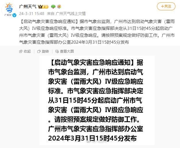 廣州啟動(dòng)氣象災(zāi)害(雷雨大風(fēng))Ⅳ級(jí)應(yīng)急響應(yīng)