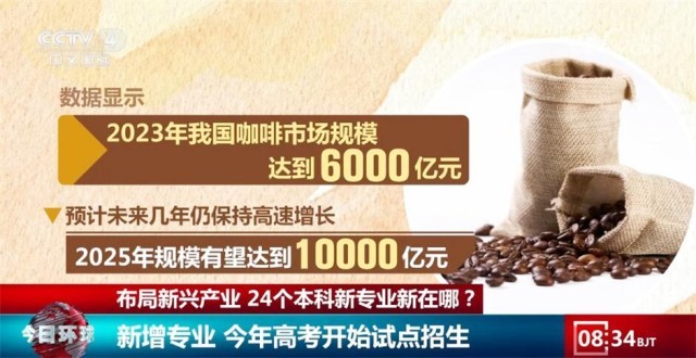那么,這些新專業到底會講授什么內容呢?總臺記者在云南農業大學采訪時發現,新增設的咖啡科學與工程專業今年計劃招收60名學生。2023年,我國咖啡市場規模達到6000億元,預計到2025年,規模有望達到10000億元。而與此同時,在幾大招聘網站上,咖啡培訓師、咖啡師主管等崗位仍有大量空缺。