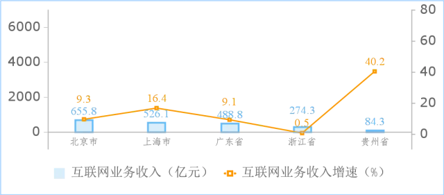 2024年1—2月份收入居前5名省市互聯網業務收入增長情況