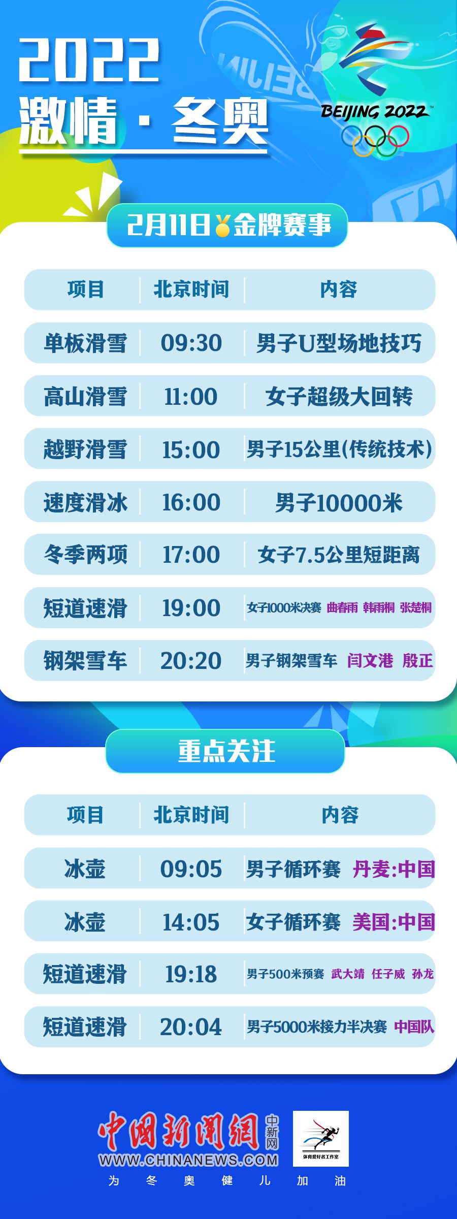 2月11日冬奧看點:武大靖開啟衛(wèi)冕之旅