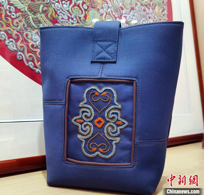 記者發現,許多產品隨著馬尾繡的加入非但不突兀,反而有一種恰到好處的感覺,比如西裝布料的手腕包,加入馬尾繡工藝后不僅時尚百搭,還顯得華麗精致。此外,色彩斑斕的馬尾繡與銀飾結合制成現代化飾品,古樸厚重卻不失時尚之韻。
