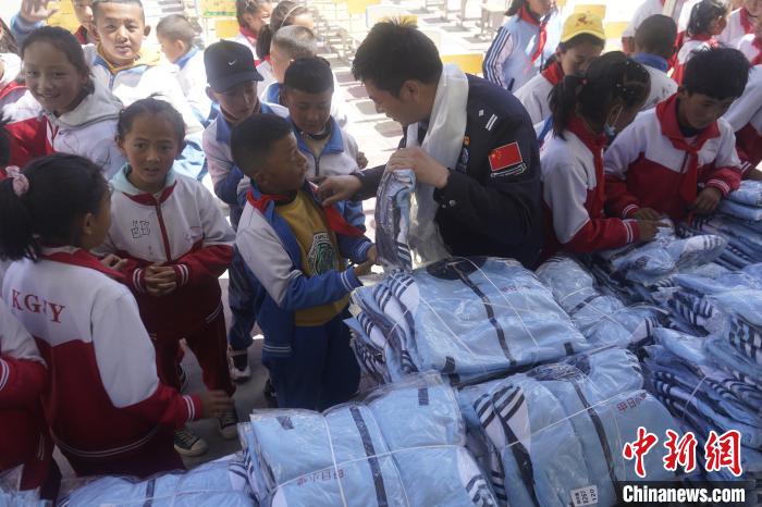 中新網拉薩5月10日電 (貢嘎來松)10日,西藏拉薩出入境邊防檢查站聯合浙江省溫州市永嘉縣東城街道人武部聯合開展“愛滿邊疆心系教育”公益助學活動,為拉薩市空港新區甲日小學贈送了345套價值4.5萬余元人民幣的校服。