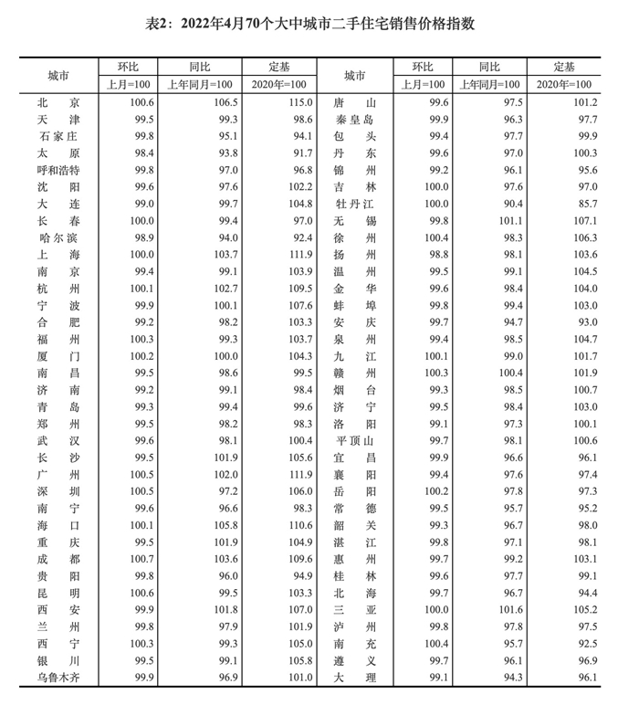 中新財經5月18日電 5月18日,國家統計局公布的數據顯示,2022年4月份,70個大中城市中,新建商品住宅和二手住宅銷售價格環比下降城市分別有47個和50個,比上月分別增加9個和5個。