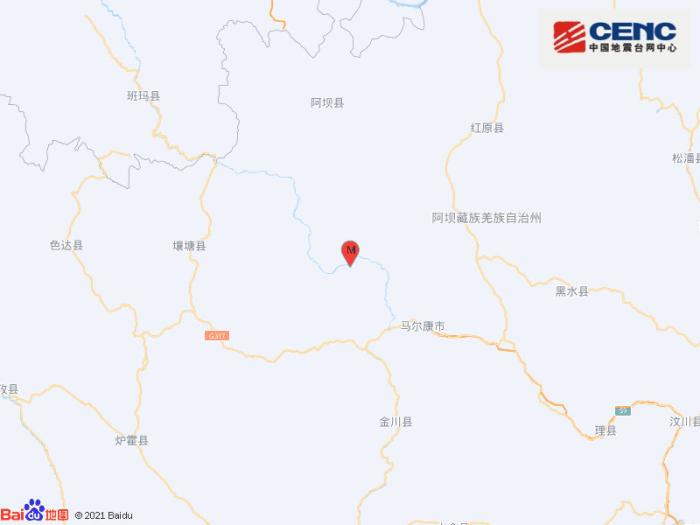 四川阿壩州馬爾康市發生3.3級地震 震源深度12千米