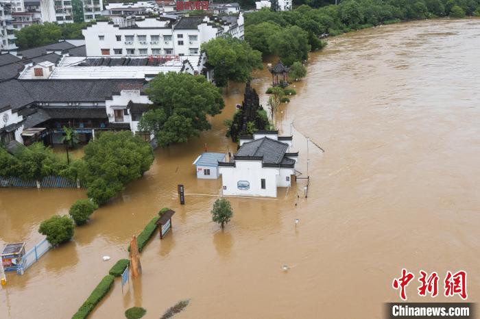 中新網南昌6月20日電 (記者 劉占昆)暴雨持續侵襲江西,境內江河水位暴漲。受強降雨影響,20日,有著“中國最美鄉村”之稱的江西省上饒市婺源縣,城區沿江低洼處進水受淹。官方發布通知,婺源縣所有景區景點暫時關閉。