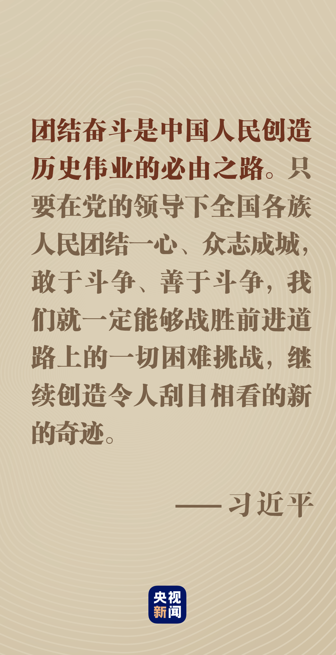 無論風云如何變幻,無論挑戰如何嚴峻,只要我們精誠團結、共同奮斗,就沒有任何力量能夠阻擋中國人民前進的步伐。