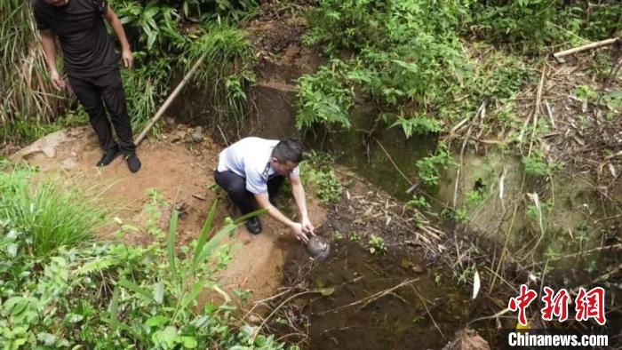 沙縣區(qū)公安分局森林警察大隊民警與林業(yè)部門人員將穿山甲帶至適合生存的深山放生。 三明警方供圖