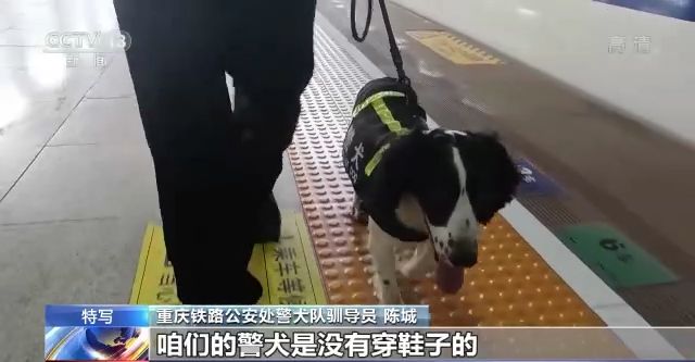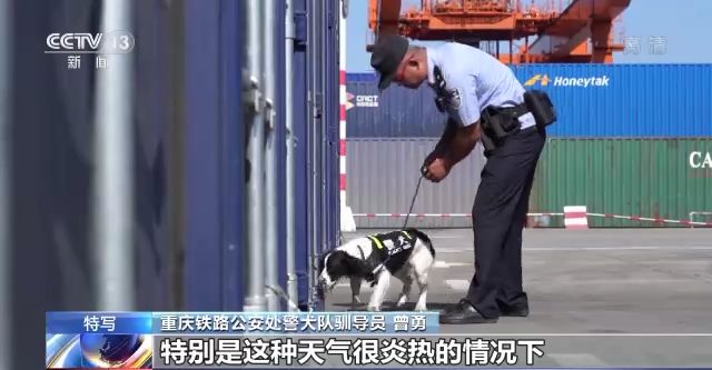 重慶鐵路公安處警犬隊馴導(dǎo)員 陳城:咱們警犬它散熱的方式就是通過舌頭,但是它工作的時候又要閉著嘴,用鼻子來呼吸、工作。天氣又太熱,它自身也非常難受,其實它內(nèi)心是非常煎熬的,但是咱們的警犬都非常棒,執(zhí)行命令也非常強。