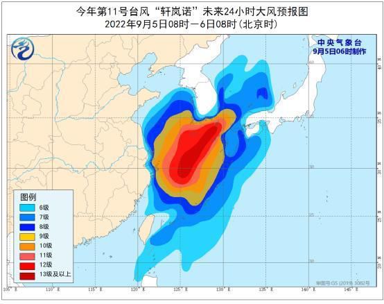 中央氣象臺消息,今年第11號臺風“軒嵐諾”的中心今天(5日)早晨7點鐘位于距離浙江省朱家尖島偏東方向約245公里的東海南部海面上(北緯29.6度、東經124.9度),中心附近最大風力有16級(55米/秒),中心最低氣壓為930百帕,七級風圈半徑350-400公里,十級風圈半徑120-150公里,十二級風圈半徑30公里。
