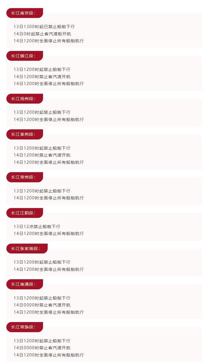 江蘇省水上搜救中心14日10時提升為防臺Ⅱ級應急響應,比三級響應更嚴格的是,除應急處置和疏散上行的船舶外,其他船舶一律停止航行,到安全水域拋錨。