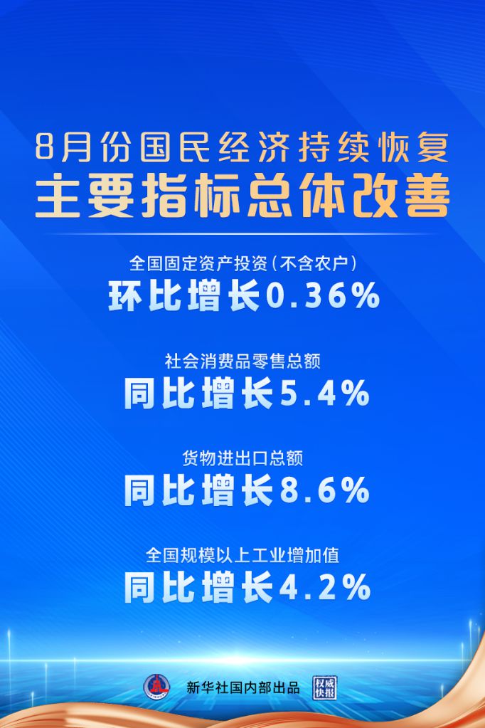 國家統計局:8月份國民經濟持續恢復,主要指標總體改善