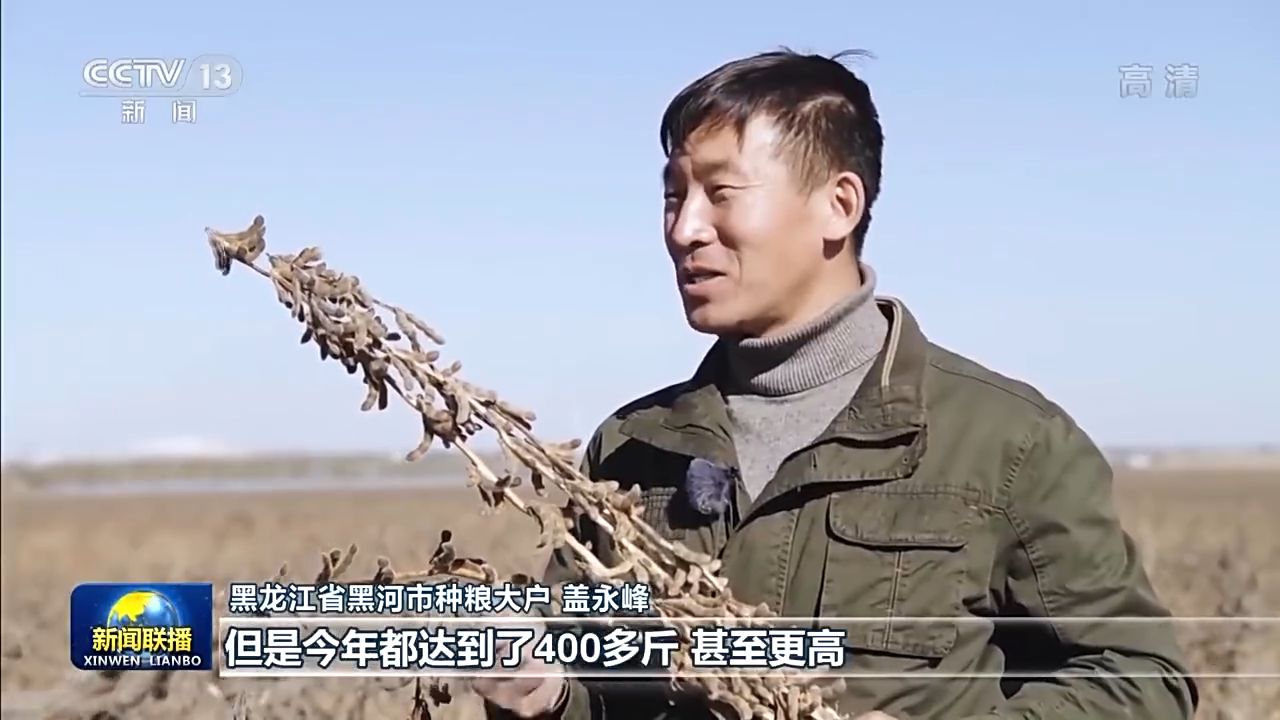 黑龍江省黑河市種糧大戶 蓋永峰:(以前每畝)要能打300多斤400斤,那都是很高的產(chǎn)量了,但是今年都達(dá)到了400多斤,甚至更高,有的能達(dá)到500多斤。