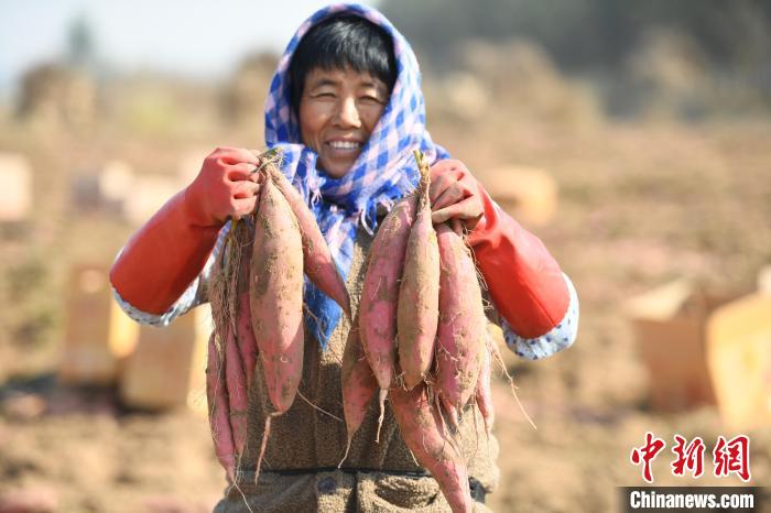 圖為河北薯農(nóng)展示今年豐收的紅薯。 鄭晨子 攝