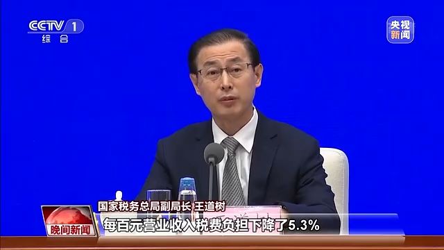 國家稅務總局副局長 王道樹:據統計全國10萬戶重點稅源企業每百元營業收入稅費負擔下降了5.3%,其中裝備制造業下降9.6%,幫助廣大市場主體爬坡過坎、紓困解難。
