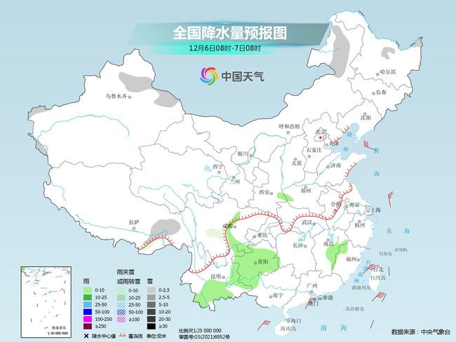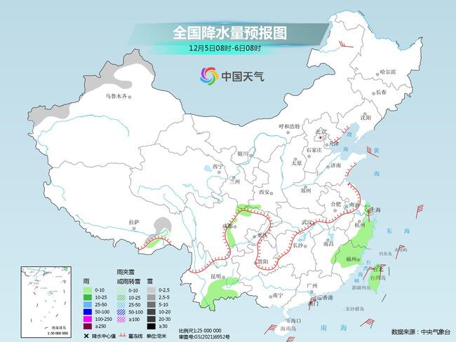 今天起,南方降水范圍將明顯縮減,全國大部進入雨雪稀少的階段。中央氣象臺預計,今天,新疆北疆北部和南疆西部山區、西藏東部等地的部分地區有小雪或雨夾雪。浙江東部、福建中北部、四川盆地西部、云南中南部、臺灣島等地部分地區有小雨。