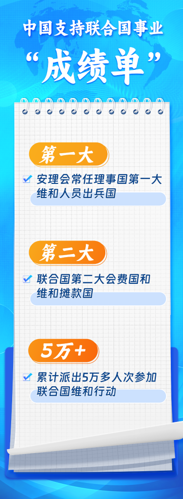 作為聯合國安理會常任理事國和第一個在《聯合國憲章》上簽字的國家,中國始終捍衛憲章的宗旨和原則,始終維護聯合國在國際事務中的核心作用,堅定不移做世界和平的建設者、全球發展的貢獻者、國際秩序的維護者。梳理相關的事實與數據,人們可以看到中國支持聯合國事業清晰斐然的“成績單”。