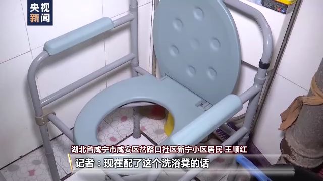 湖北省咸寧市咸安區岔路口社區新寧小區居民 王順紅:原來就用盆,給他擦洗?,F在方便多了,洗浴凳又穩,不怕摔跤,帶來很大的方便。